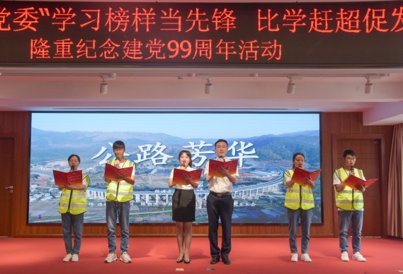 在“七一(yī)”到(dào)來(lái)之際,6月(yuè)30日(rì)下(xià)午,公司舉辦以“學習(xí)榜樣當先鋒 比學趕超促發展”為(wèi)主題的(de)隆重紀念建黨99周年(nián)活動。公司領導班子(zǐ),機(jī)關部門(mén)負責人(rén),各基層單位經理(lǐ)、黨支部書(shū)記、工(gōng)會(huì)主席、團支部書§γ(shū)記以及黨員(yuán)代表、職工(gōng)群衆代表共140餘人(rén)參加。