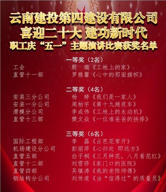 工(gōng)地(dì)上(shàng)溫暖的(de)家(jiā)——陸良康衡·書(shū)$ ↕境項目職工(gōng)驿站(zhàn);精益求精、銳意進取的(de)質量員(yuán)&ldqΩ♣uo;老(lǎo)陳師(shī)傅”;堅守崗位、奮戰一(yī)線的↕'$✔(de)準爸(bà)爸(bà)餘智先;天天和(hé"&≥)混凝土(tǔ)打交道(dào)的(de)“信∏"₹得(de)過”的(de)90質量員(yuán)王垚&helli∑↑§p;…選手們激情飽滿、活力四射,用(yòng)真實的(de≠π&α)故事(shì),動情地(dì)訴說(shuō),把演講比賽現(xiàn)場(chǎng)氛圍一(yī)次次推向高(gāo)潮。最終,公司工≠↑✘(gōng)會(huì)殷瑞演講的(de)《工(gōng)地(dì)上(shàng)∑↓↑的(de)家(jiā)》、直管十一(yī)部 ∏γβ羅雅馨演講的(de)《心中的(de)那(nà)面旗幟》獲& φ©得(de)一(yī)等獎。