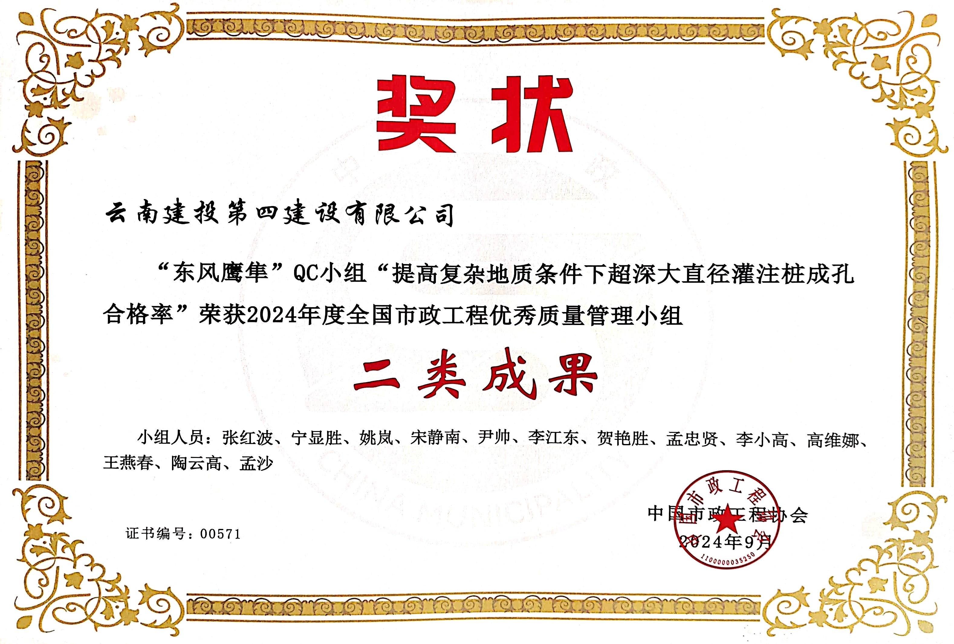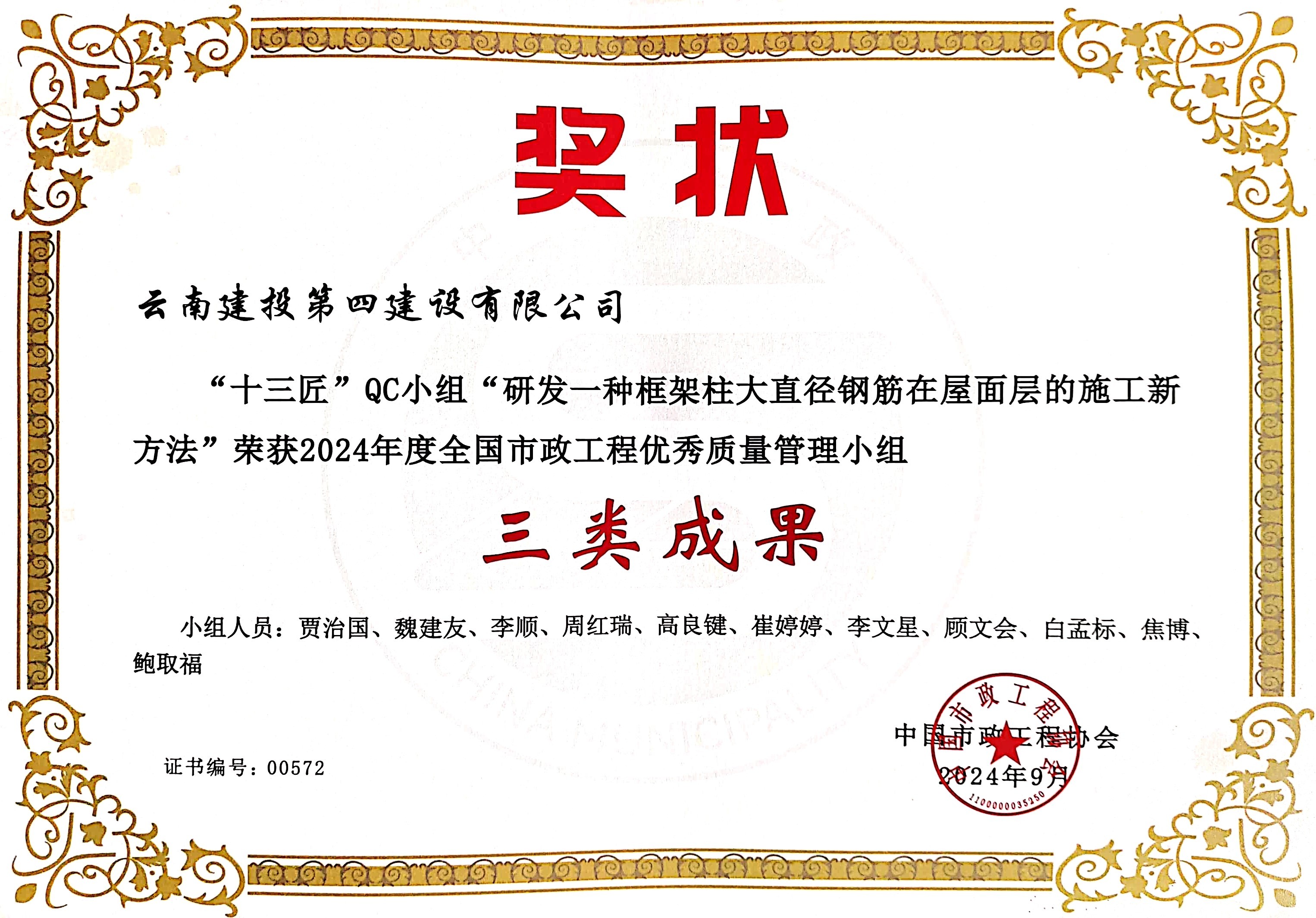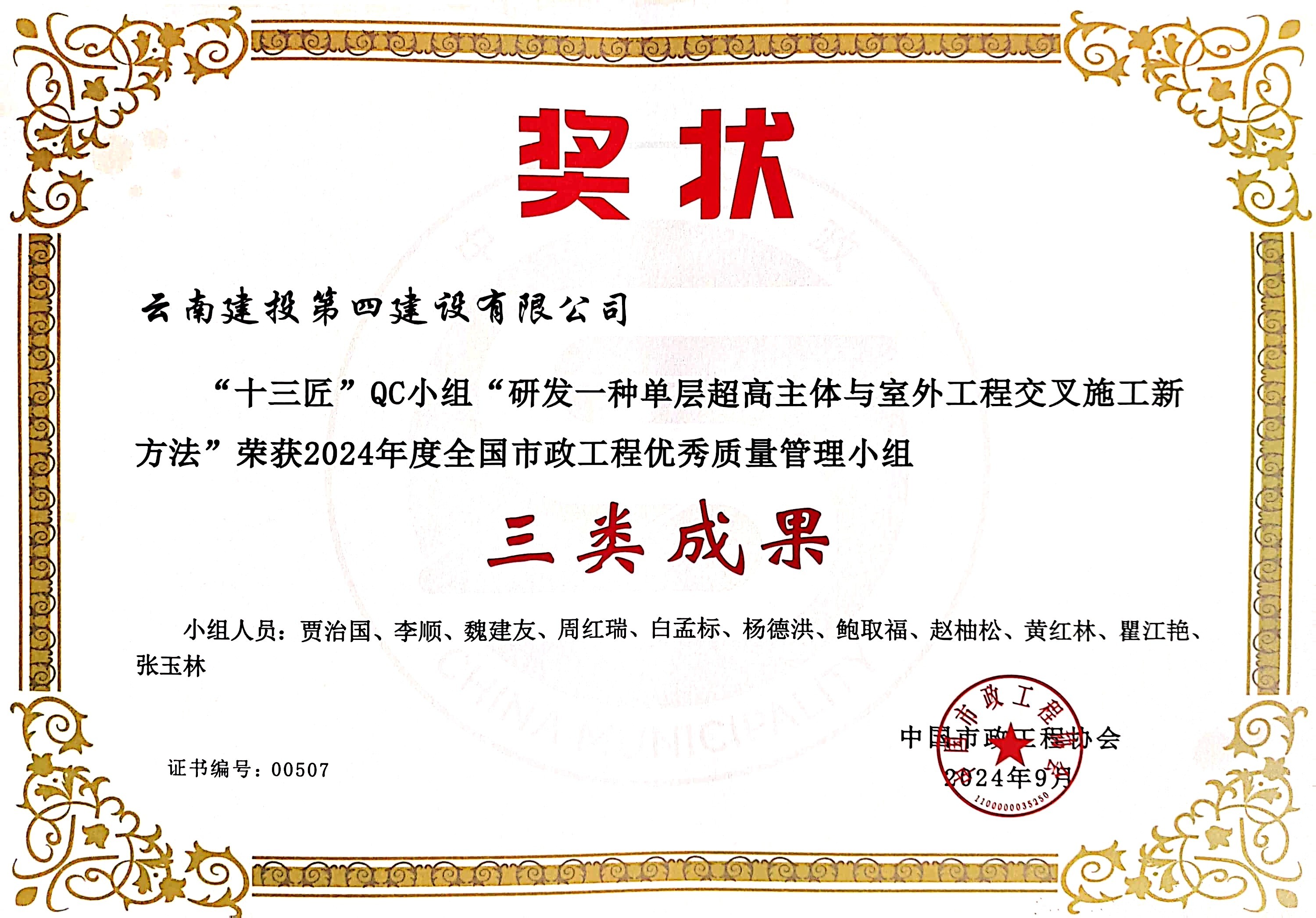 近(jìn)日(rì),從(cóng)2024年(nián)度全國(guó)市(shì)政工(gōng)程建設質量管♣↔理(lǐ)小(xiǎo)組活動成果交流會($•huì)上(shàng)獲悉公司組織申報(bào)®¥←≠的(de)5項質量控制(zhì)小(xiǎo)組活動成果榜上(shàng)有(>'∞yǒu)名,分(fēn)别榮獲2024年(nián)度全國(guó∏×§)市(shì)政工(gōng)程優秀質量管理(lǐ)小(xiǎo)組二類成果1個(gè),三類成果§®α4個(gè)。